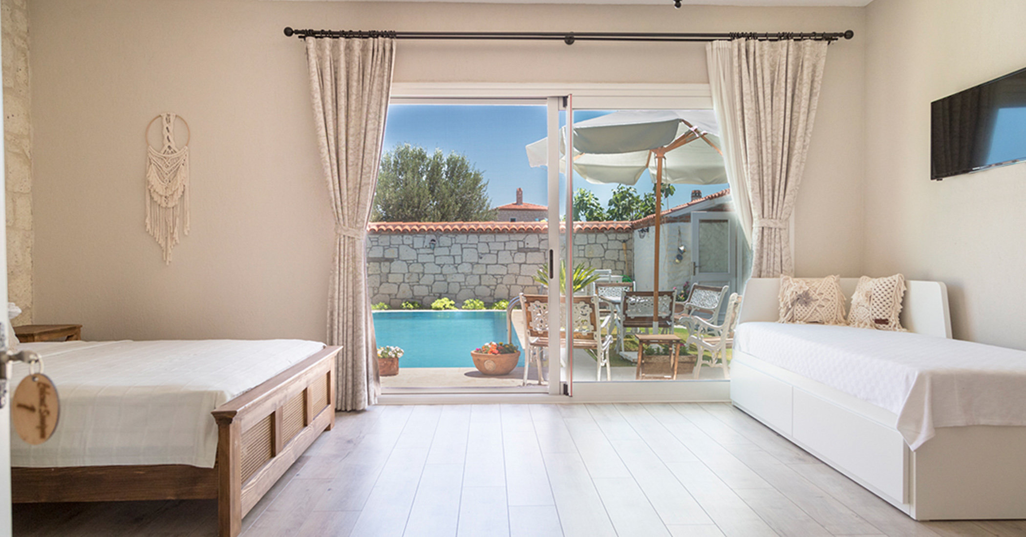 Villa Bade Otel’e ev sahipliği yapan biz baba-kız, bu köyde doğup yaşamlarının kalan kısmını da burada devam ettirmeye karar verenlerdeniz.